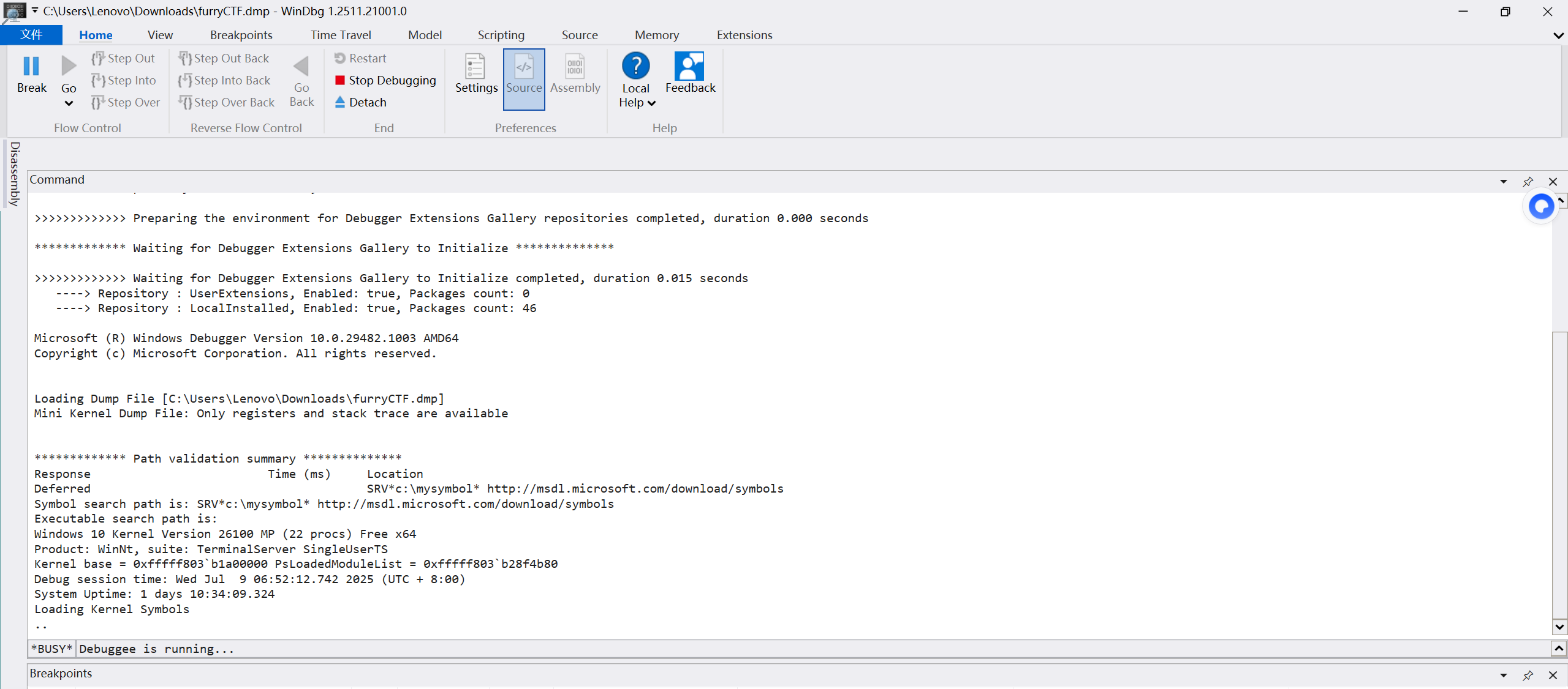 打开windbg后